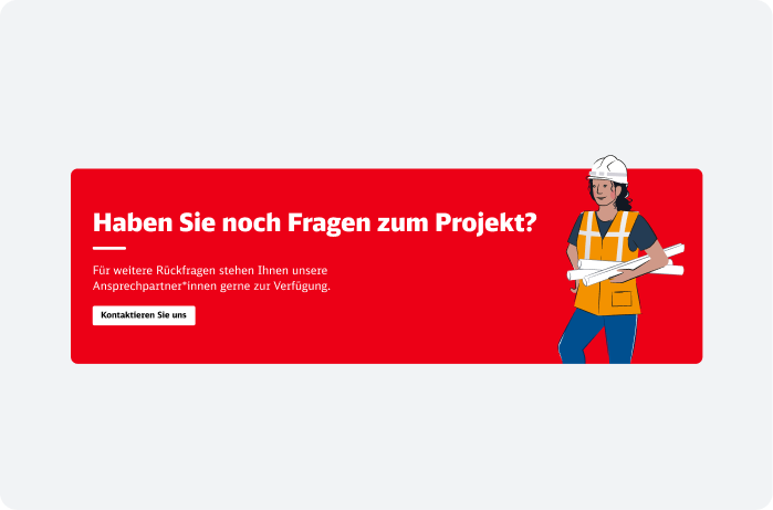 Bei der Gestaltung der Websites zur Baukommunikation ist die Einhaltung der aktuellen Barrierefreiheitstandards zu beachten. Weitere Informationen dazu finden Sie im Marketingportal unter Barrierefreiheit.