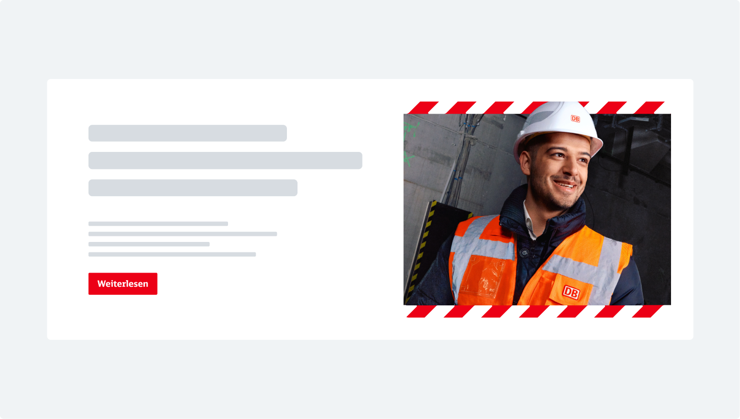 Teaser wecken Interesse und geben einen kurzen Einblick in ein weiterführendes Thema, um anschließend tiefer einzutauchen. Sie kombinieren meist ein visuelles Element mit einer Überschrift und einem optionalen kurzen Text, um Nutzer:innen zum Weiterlesen zu motivieren. Diese Bildmotive passen dabei stets zu dem beschriebenen Thema und leiten dieses visuell ein.