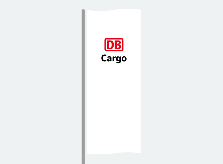 Das DB Cargo Logo stellen wir auf Fahnen in der Grundform dar. Die Abstände von Bild- zu Wortmarke sind fest definiert. Mehr Informationen zum DB Cargo-Auftritt findest du hier.