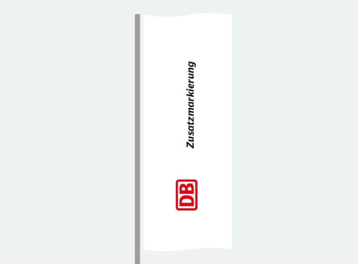 Egal ob Banner oder Fahne: gezeigt wird in der Regel nur das DB Logo oder eine Geschäftsfeldmarke. Ausnahmen gelten für den Bereich Cargo und Zusatzmarkierungen. Der Trägerstoff ist immer weiß.