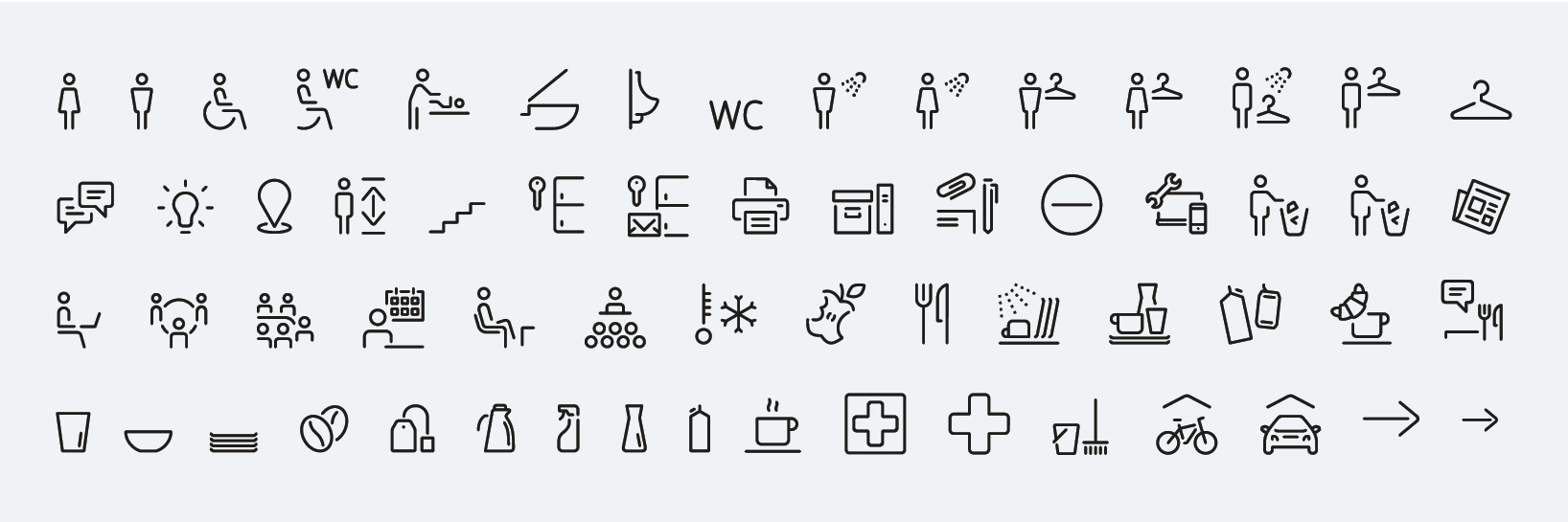 Die Icons im architektonischen Kontext basieren auf einem definierten Grundraster (72 x 72 mm) und einer festgelegten Strichstärke. Die detaillierten Gestaltungsvorgaben und Richtlinien findest du hier.