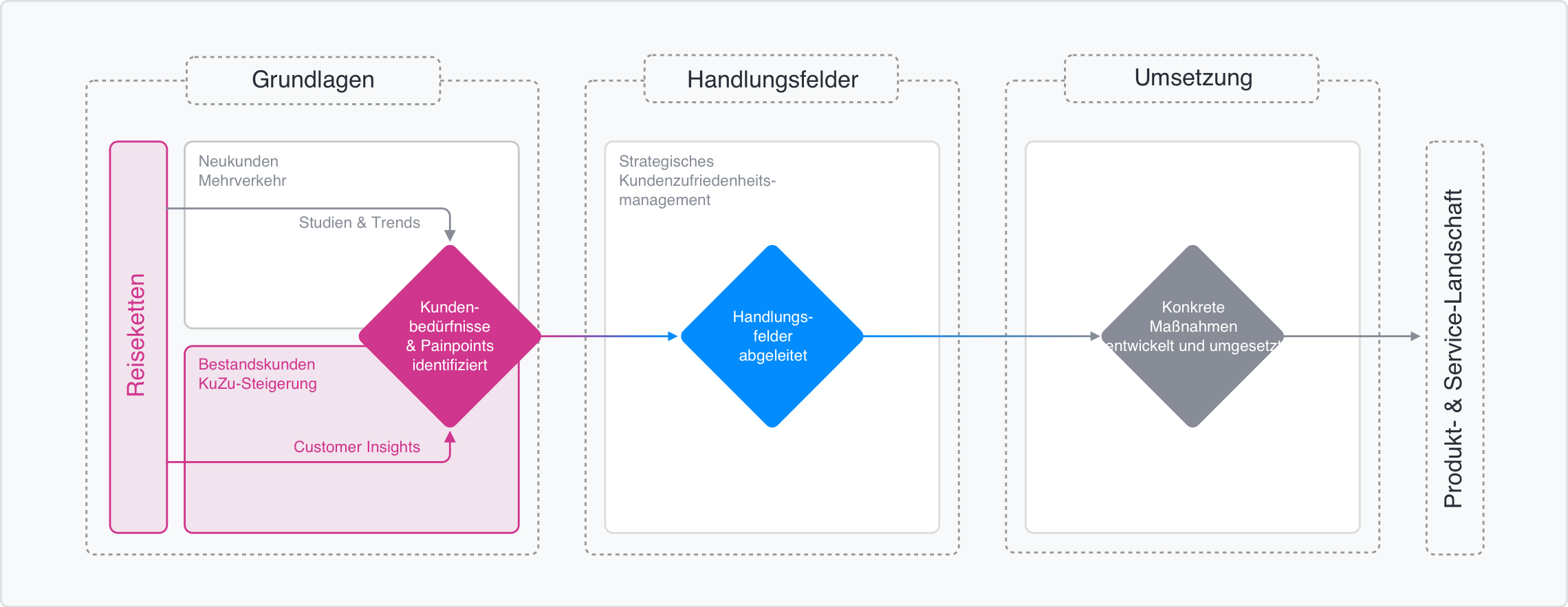 Die Kundenzufriedenheit ist das Ergebnis der Kundenerlebnisse über die gesamte Reisekette hinweg. Folglich bedarf es einer übergreifenden Sicht auf das Kundenerlebnis, um gemeinsam die richtigen Hebel zur Steigerung der Kundenzufriedenheit in Gang zu setzen.