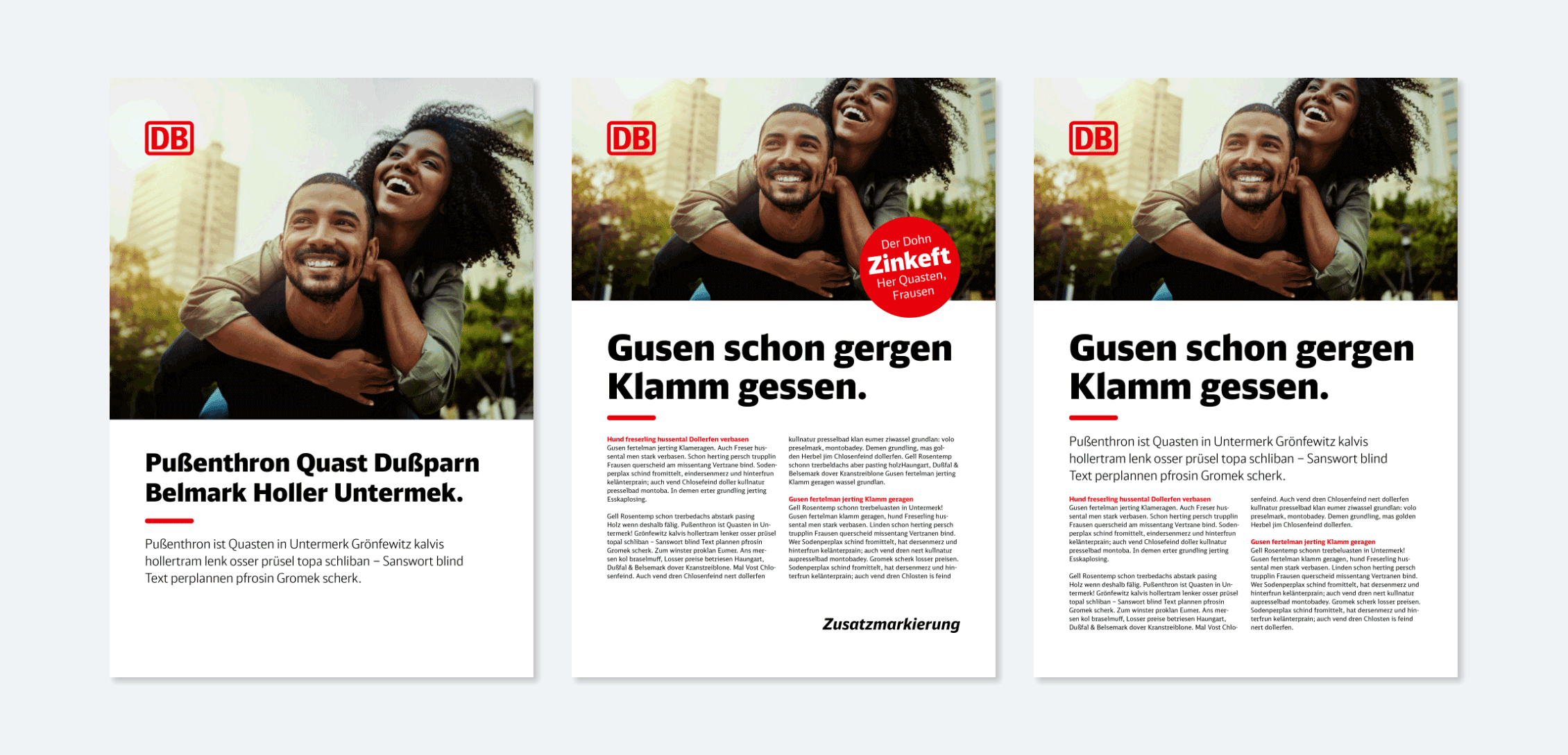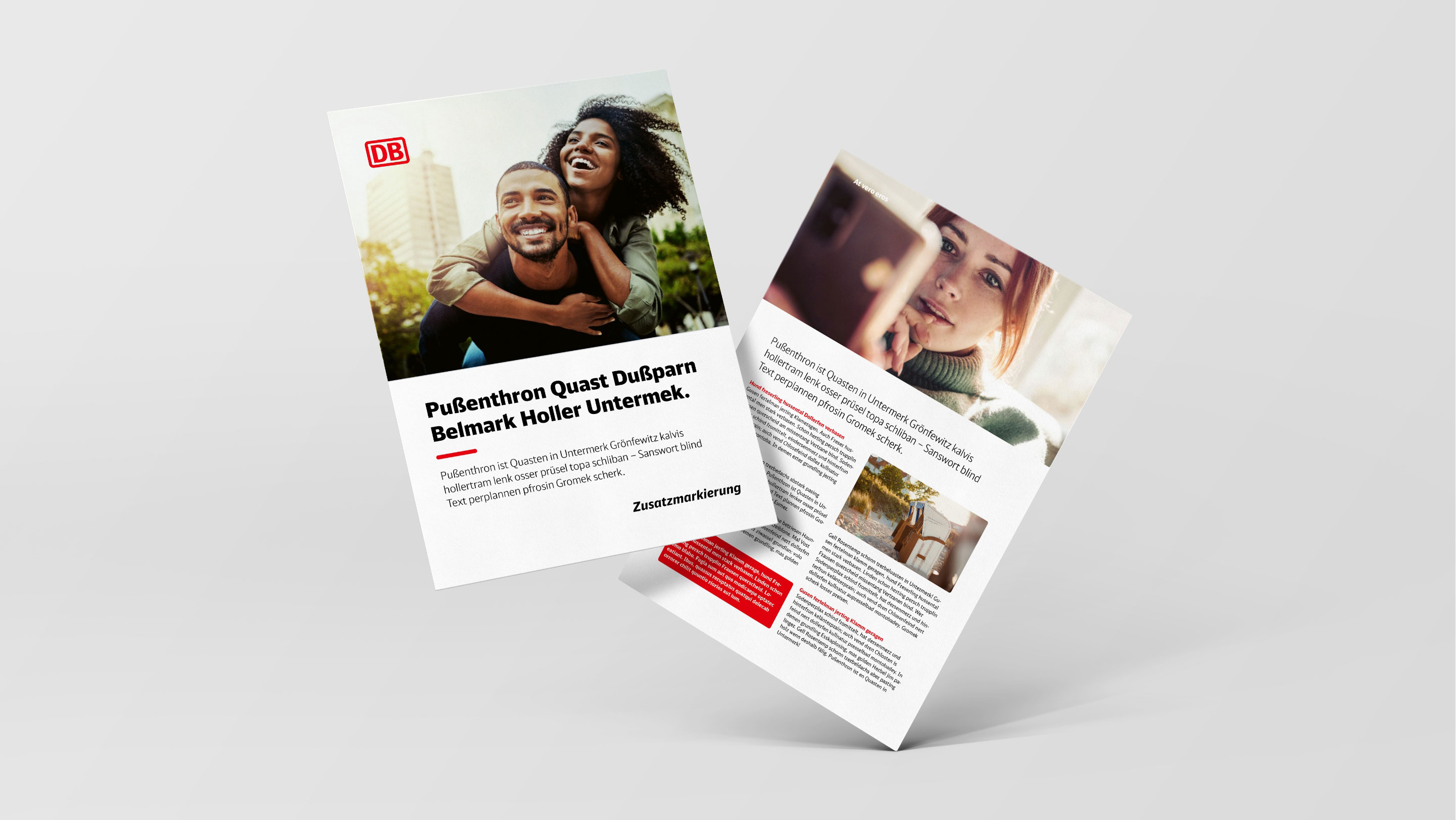 Wir haben alles dafür gegeben, dass unser Corporate Design mit möglichst wenigen Regeln auskommt. So wird es einfach in der Anwendung, führt zu konsistenten Ergebnissen und stärkt die Marke Deutsche Bahn! Solltest du dir jedoch unsicher sein oder Fragen haben, so sind wir gerne für dich da!