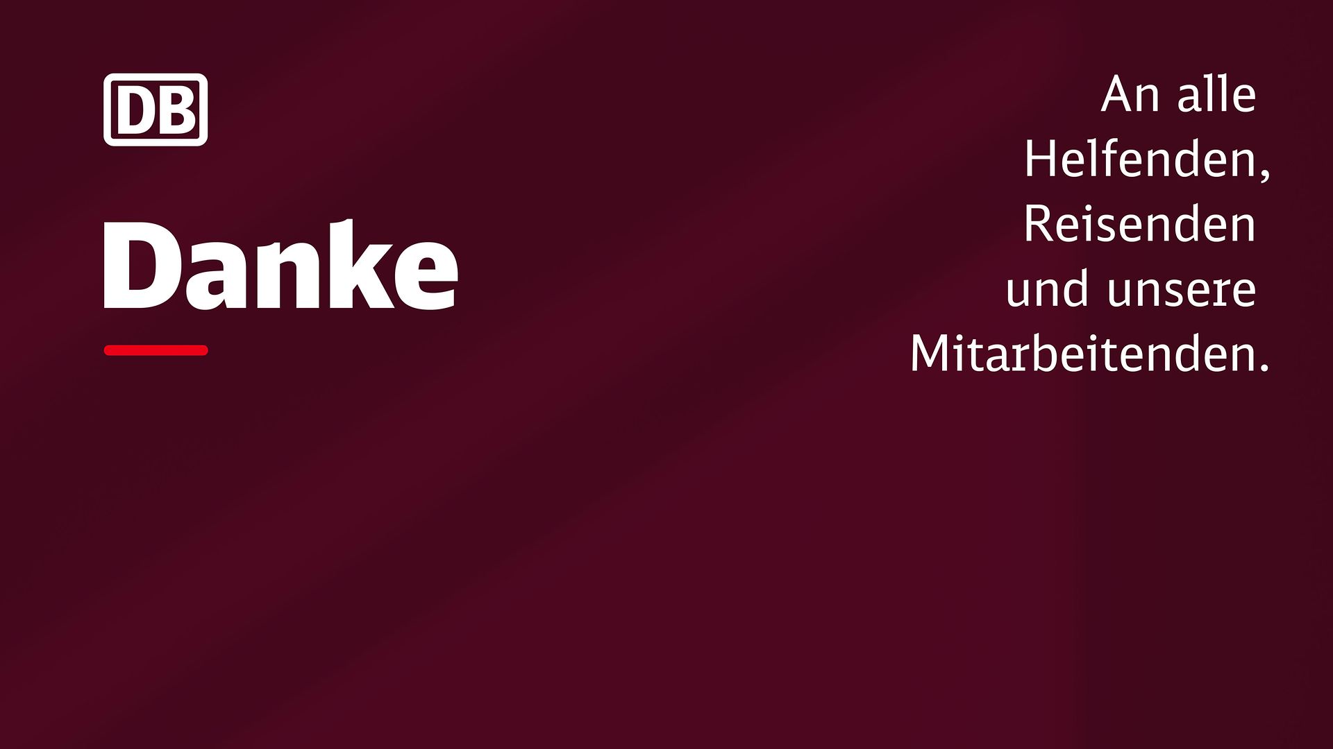 Wir haben alles dafür gegeben, dass unser Corporate Design mit möglichst wenigen Regeln auskommt. So wird es einfach in der Anwendung, führt zu konsistenten Ergebnissen und stärkt die Marke Deutsche Bahn! Solltest du dir jedoch unsicher sein oder Fragen haben, so sind wir gerne für dich da!