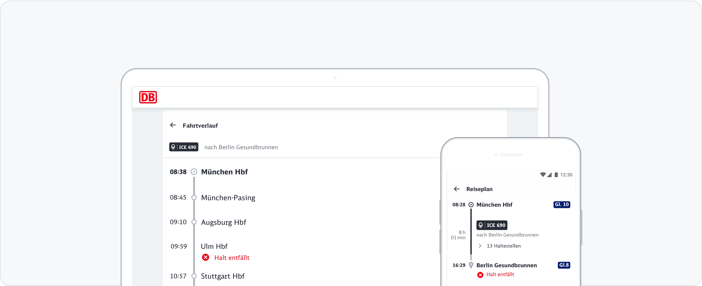 Der Haltausfall kann sowohl im Verkehrsmittelverlauf als auch bedingt im Reiseverlauf kommuniziert werden: