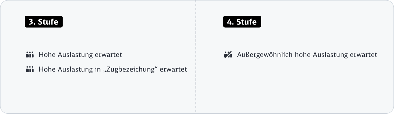 Über die Ermittlung der Auslastungsinformation im Nah- und Fernverkehr kannst Du Dich in der Dokumentation zur „Gestaltungsprinzipien Auslastungsinformation“ informieren.