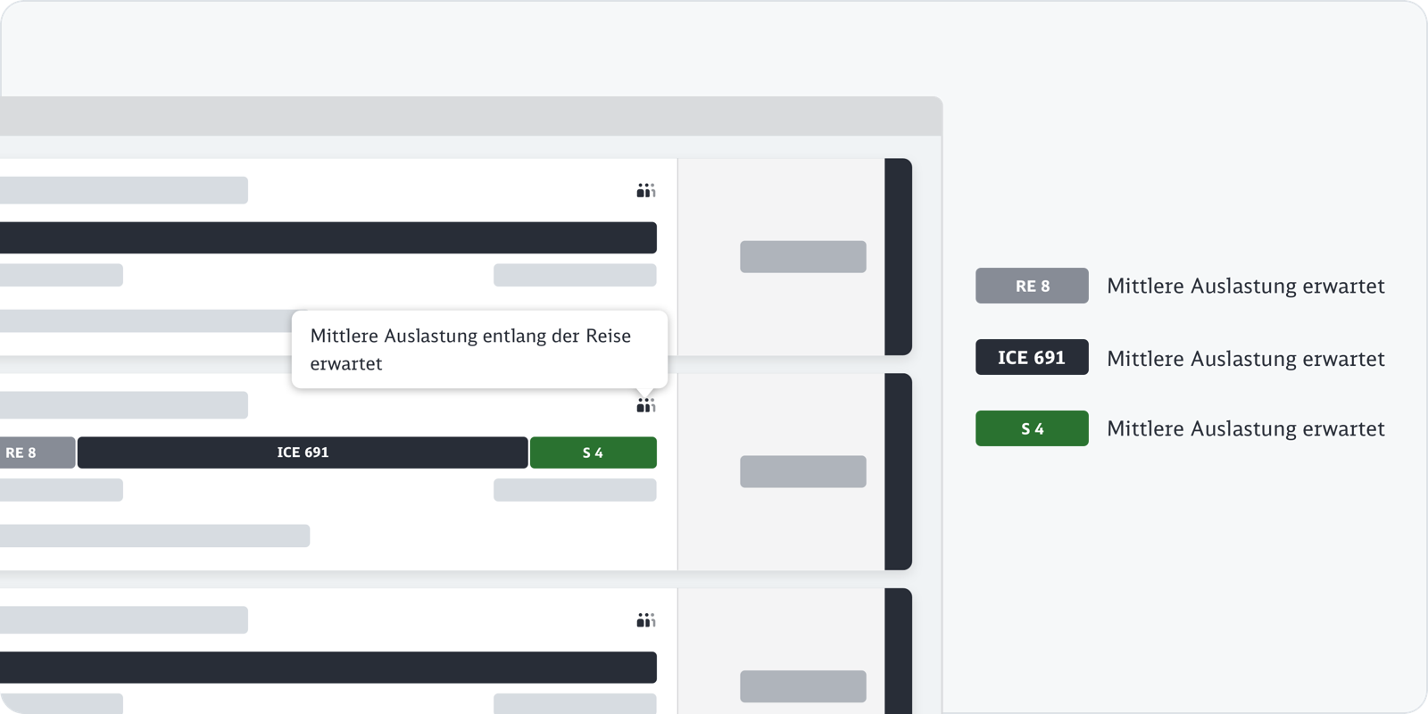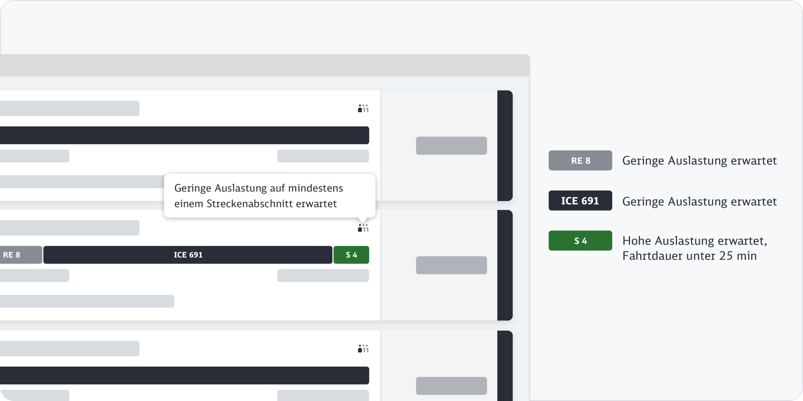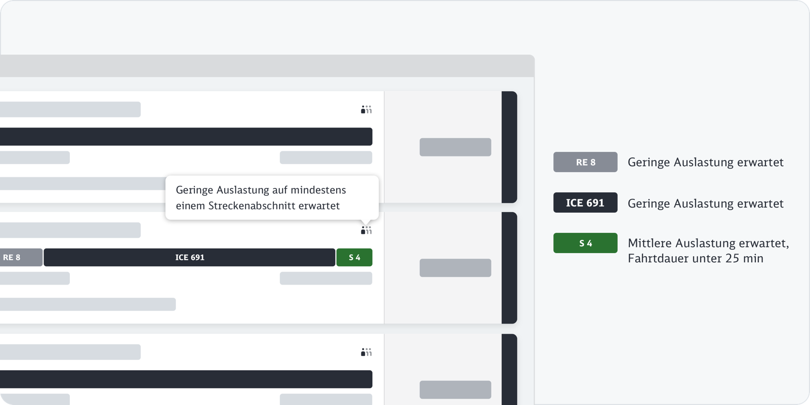 Im Kontext des Reiseverlaufs zeigen wir bei jedem Verkehrsmittel die Auslastung an.