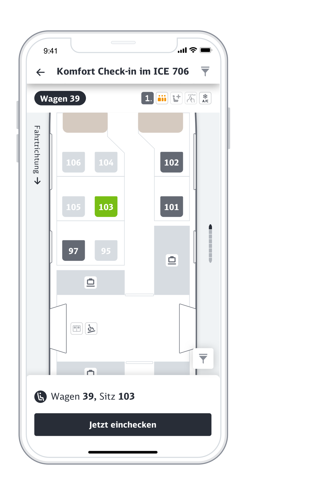 Durch die absichtliche Abstraktion des Zuges und seiner Merkmale zu einer reduzierten Darstellung, bieten wir sowohl Reisenden als auch Mitarbeitenden eine intuitive Orientierung am Bahnsteig und eine übersichtliche Wegeleitung im Zug. Wir gewährleisten, dass Reisende sich besser zurechtfinden und optimieren das Reiseerlebnis.