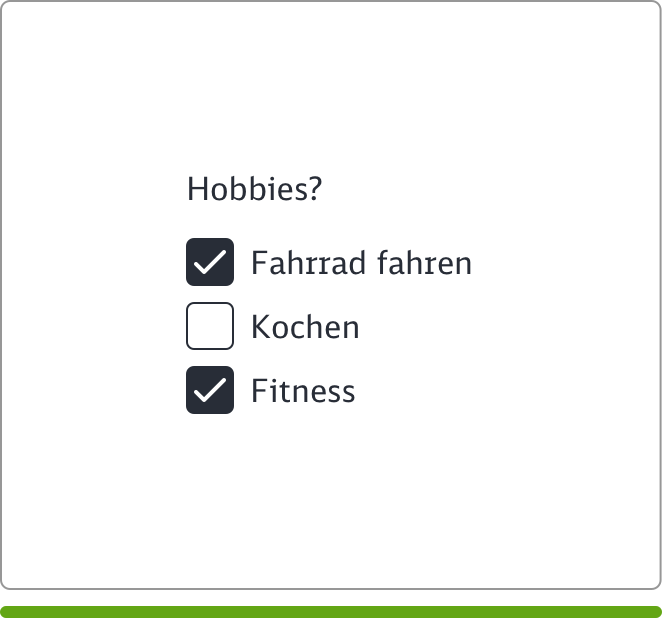 Bei Listen, in denen eine Mehrfachauswahl der Einträge möglich sein soll, werden Checkboxen verwendet. Die Einträge dürfen sich hierbei nicht gegenseitig ausschließen.
