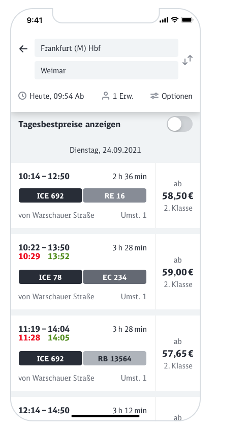 Wir sind effizient in zeitkritischen Momenten, wie einer Ticketbuchung, und fokussieren nur auf die wesentlichen Elemente und Information, die für eine erfolgreiche Buchung notwendig sind.