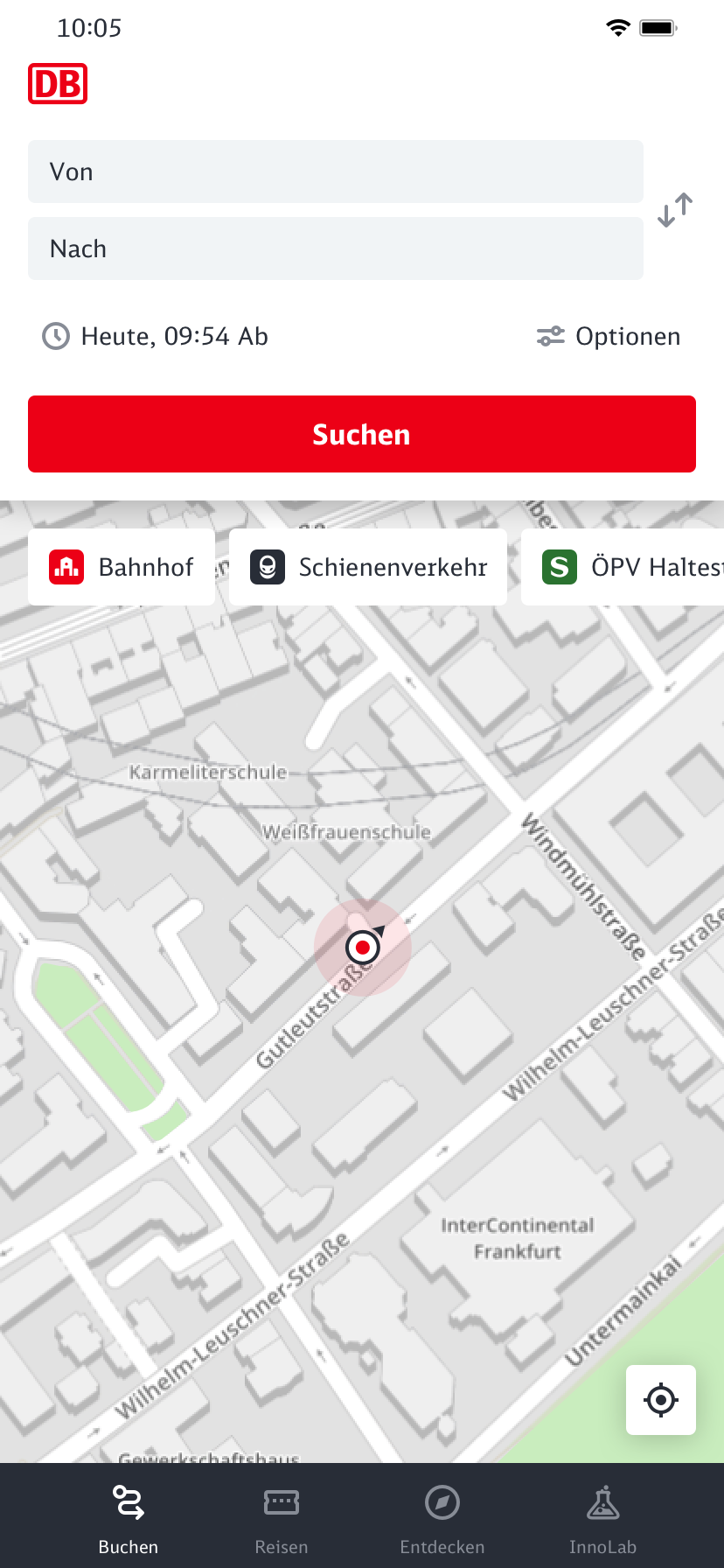 Um unsere Kunden in jeder Situation ideal zu unterstützen, bieten wir unterschiedliche Einstiege zur Mobilität. Eine Karte gibt z.B. schnellen Zugang zu unterschiedlichen Verkehrsmitteln in der unmittelbaren Umgebung. Konfigurierbare Widgets außerhalb der Karte zeigen den schnellsten Weg von der aktuellen Position zu einem bestimmten Ort oder halten Nutzer über aktuelle Verbindungen für einzelne Strecken auf dem Laufenden.