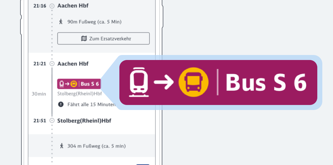 Der Ersatzverkehr: visuell stark entlang der Reisekette