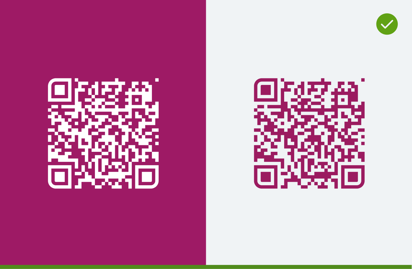 Der QR-Code erscheint in Verkehrspurpur auf hellem Hintergrund bzw. in Weiß auf Verkehrspurpur.