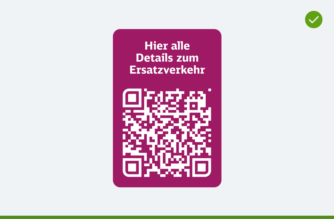 In der Ersatzverkehrs-Kommunikation können QR-Codes für weiterführende Informationen genutzt werden. Sie erscheinen in Verkehrspurpur auf hellem Hintergrund und in Weiß auf Verkehrspurpur.