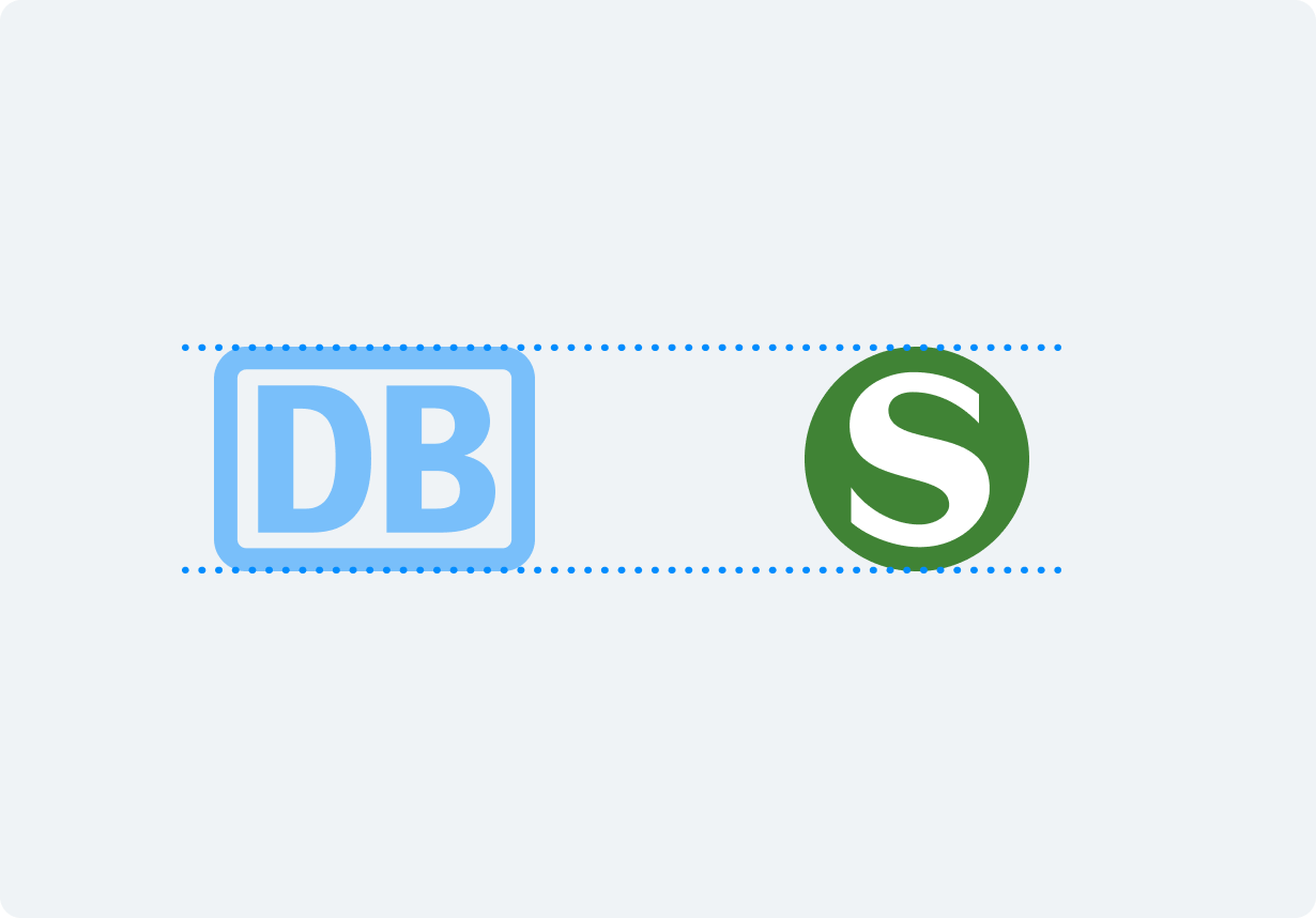 Bei Kommunikationsmaßnahmen mit der S-Bahn als zusätzliche Absenderin gelten spezifische Vorgaben für dessen Größe und Position. Grundlage bildet hierbei stets das DB-Logo. Es ist zu unterscheiden, ob die S-Bahn oder die DB Hauptabsenderin ist. Detaillierte Vorgaben zur Verwendung des S-Bahn-Logos sind hier im entsprechenden Kapitel zugänglich.