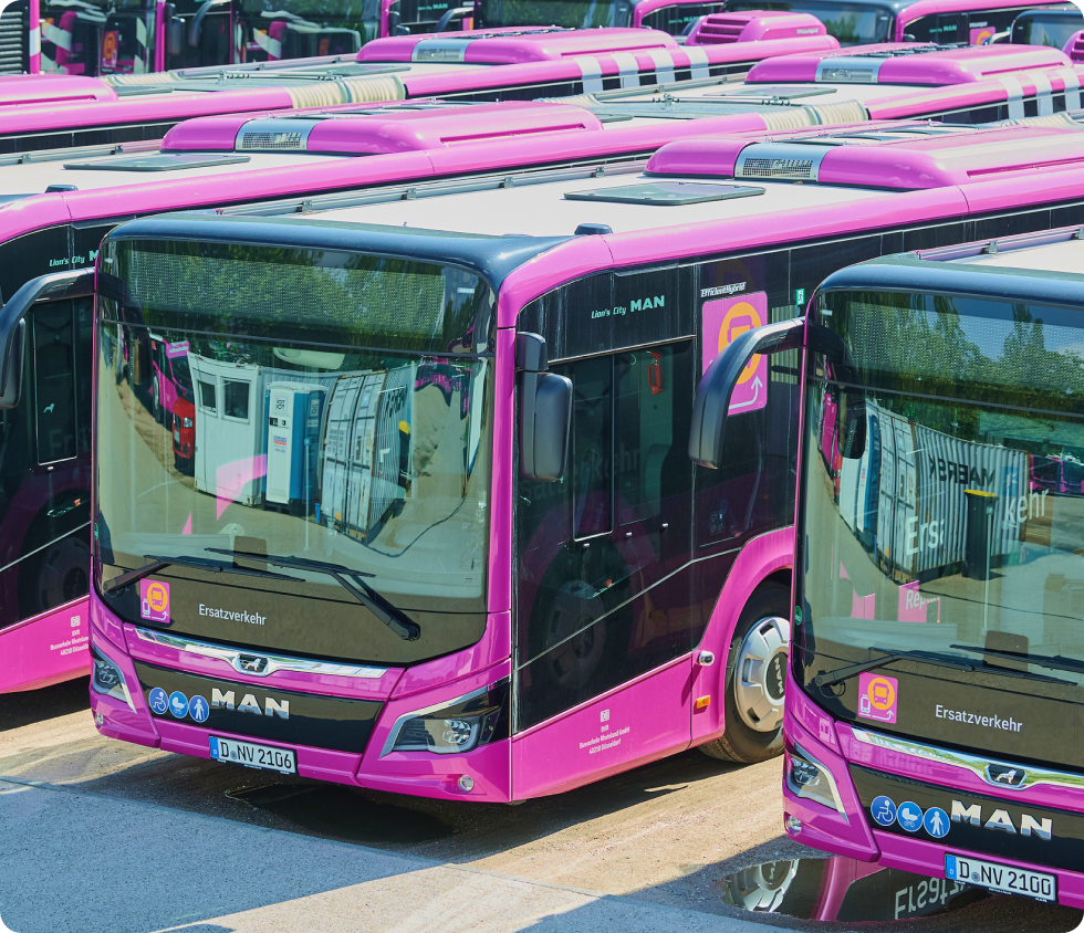 Bei Einschränkungen im Bahnverkehr stehen den Reisenden häufig Busse als alternative Beförderungsmöglichkeit zur Verfügung. Für diese Ersatzverkehre ist ein einheitliches Fahrzeugdesign vorgesehen. Das Branding erfolgt unabhängig vom jeweiligen Betreiber und gewährleistet eine diskriminierungsfreie Gestaltung aller Beschriftungen. Ein Hinweis auf den ausführenden Betreiber erfolgt ausschließlich über die BO-Kraft, deren Logo gemäß den festgelegten Vorgaben zu Größe und Farbe eingesetzt wird.