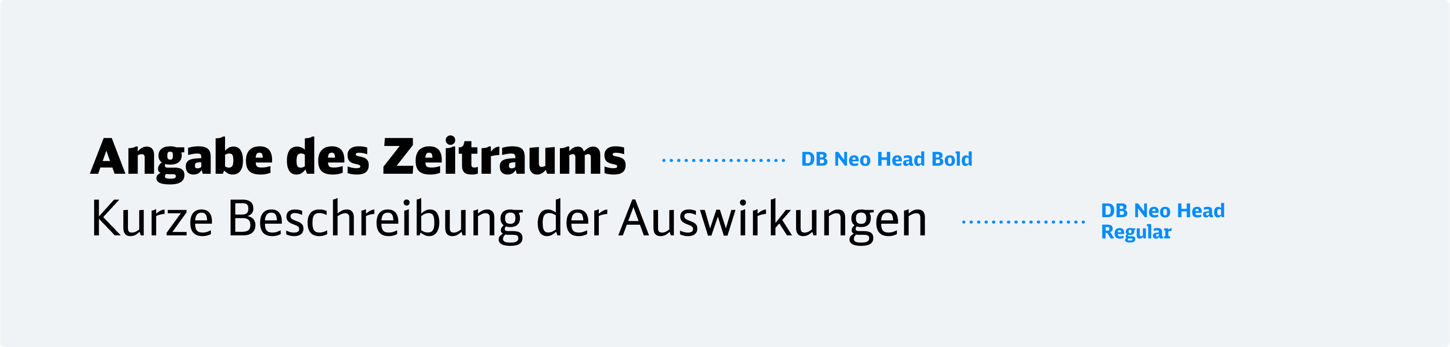 Die Subline bildet die dritte Inhaltsebene. Sie nennt den Zeitraum in DB Neo Head Black und liefert Zusatzinfos in DB Neo Head Regular.