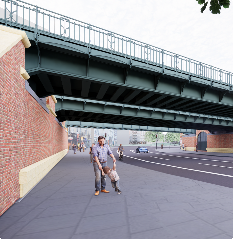 Unsere Bildsprache vermittelt den Kern der Baukommunikation – „Wir packen’s gemeinsam an“. Sie stellt den Menschen in den Mittelpunkt und gewährt Einblicke in die Baustellen. Die abgebildeten Mitarbeitenden strahlen Engagement und Leidenschaft aus und werden in authentischen Arbeitssituationen eingefangen. Dabei ist es entscheidend, dass die Sicherheitskleidung dem jeweiligen Bildkontext entspricht. Die Fotos können durch Bildmotive des aktuellen Baustands oder planerische sowie architektonische Visualisierungen ersetzt werden. Bei der Verwendung großflächiger Bilder sollte stets die Lesbarkeit des Textes sichergestellt werden. Die Quellenangaben externer Bildmotive werden dezent und in kleiner Schriftgröße seitlich gestürzt am Bildrand integriert.