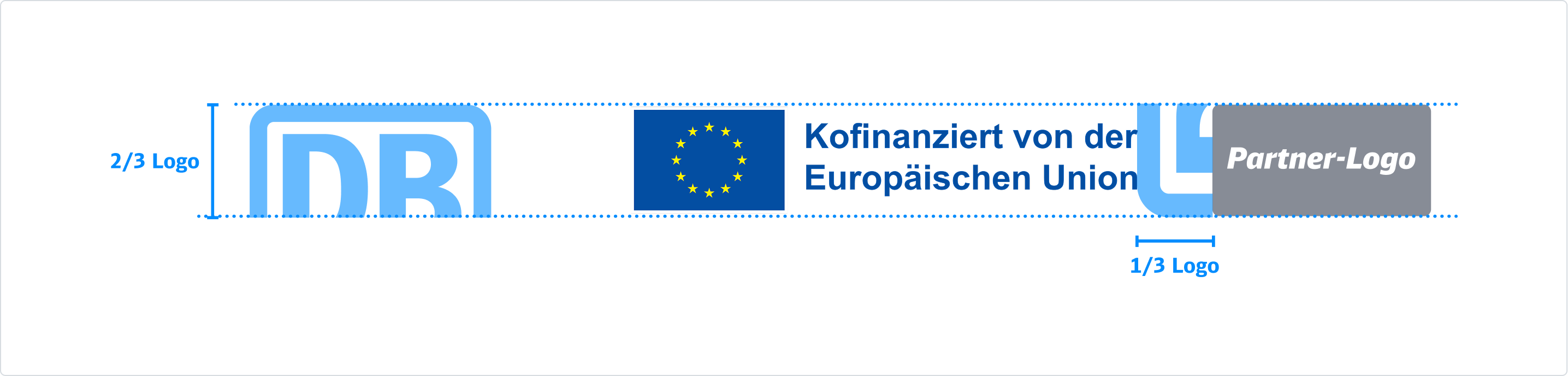 Diese stehen bevorzugt am unteren Rand des Layouts, alternativ auch oben. Partner-Logos dürfen maximal 2/3 so groß wie das DB-Logo sein, mit mindestens einem Drittel Abstand zueinander – bevorzugt auf weißem Hintergrund, um klar erkennbar zu sein. Auf rotem Hintergrund werden die Partnerlogos ausschließlich weiß dargestellt, sofern weiße Logo-Varianten vorhanden sind. Bei Verwendung des Deutschlandtakt-Logo wird dieses in der Größe des DB-Logos eingesetzt. Die spezifischen Logo-Vorgaben der Partner sind zu beachten.