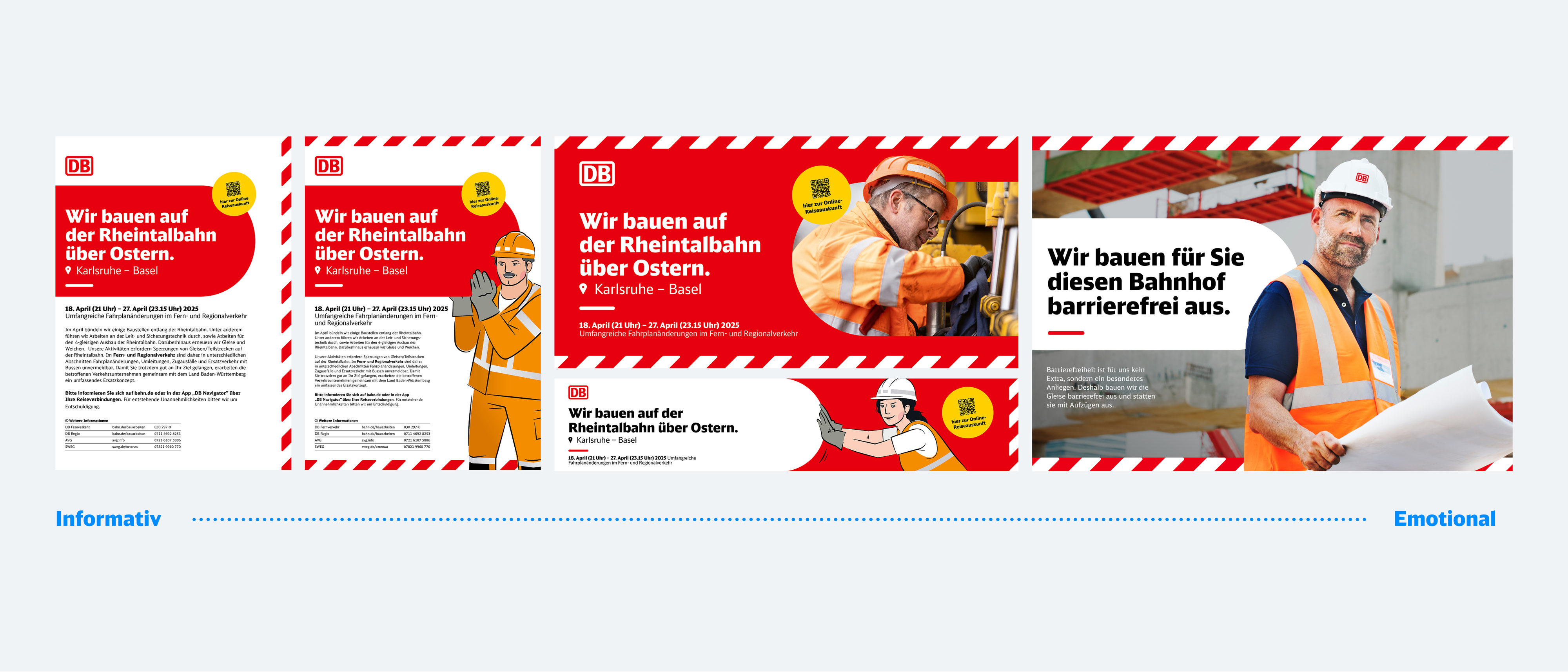 Klar im Design, flexibel im Inhalt – das prägnante Gestaltungssystem der Baustellenkommunikation lässt Spielraum für verschiedene Anwendungen.
