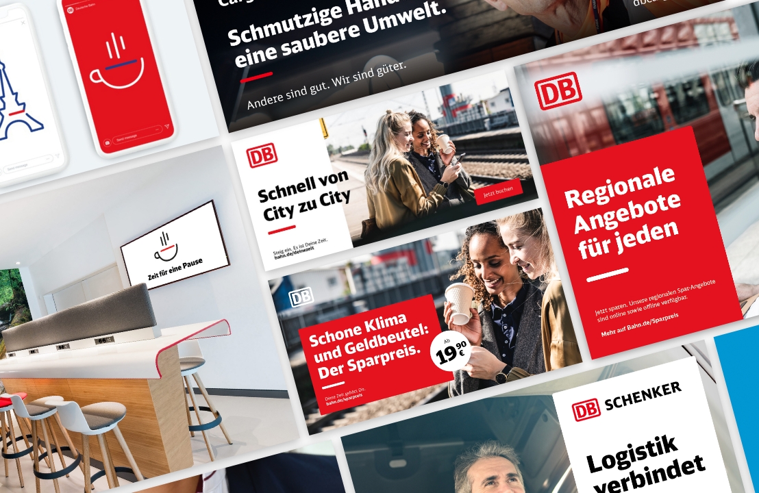 Fast jeder kennt die Deutsche Bahn – und erkennt sie an ihrem charakteristischen Markenauftritt. Damit dies auch in Zukunft so bleibt, setzen wir wiederkehrende Gestaltungselemente konsequent und nach immer gleichen Mustern ein. Zugleich geben wir in der Kommunikation zusätzliche Möglichkeiten, um strategisch wichtigen Themen Sichtbarkeit zu verleihen! Die Ergebnisse: leichtere Anwendbarkeit, deutlich effizienteres Marketing und stärkere emotionale Bindung von Kund:innen und Marke.