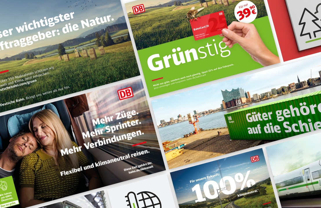 Immer „typisch Bahn“: Das Kommunikationsmuster Basis gilt für rund 80% unserer Kommunikation. Es arbeitet mit den markenprägendsten Elementen und ermöglicht dir hohe Effizienz in der Markenarbeit. Nähere Informationen hierzu findest du